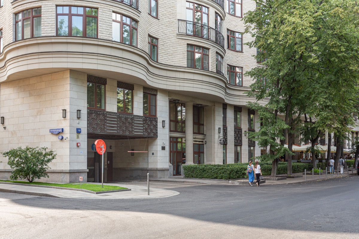 Купить квартиру в ЖК Дом на Трубецкой возможно на вторичном рынке недвижимости с отделкой или свободной планировки от 115 до 247 кв.м. Во всех квартирах предусмотрены панорамные окна и открытые балкончики, сквозь которые жилые пространства залиты естественным светом целый день. С верхних этажей жителям открывается дивная панорама на парк «Усадьбу Трубецких» и окружающие улочки района Хамовники. Высота потолков составляет 3,35 метров.