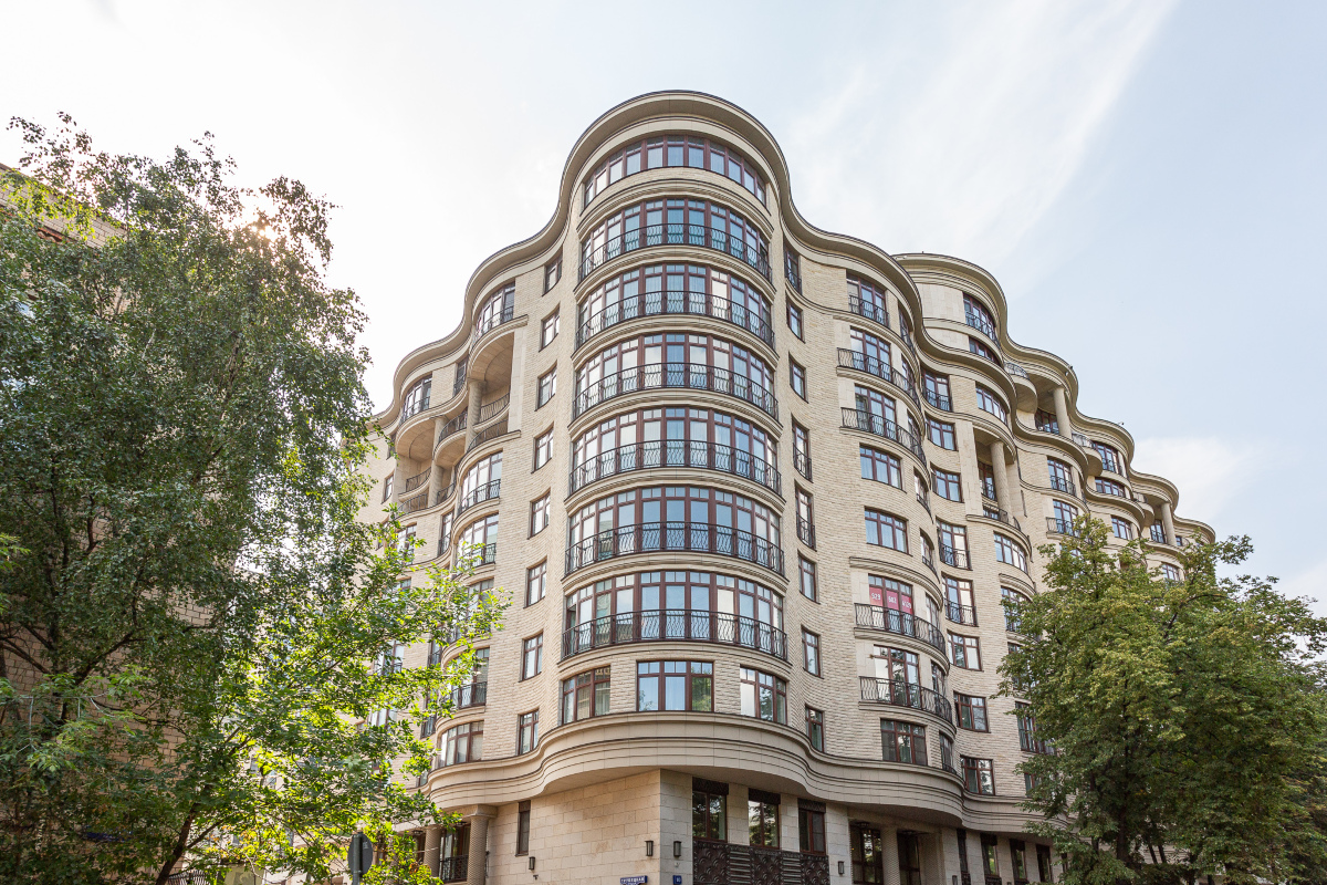 Купить квартиру в ЖК Дом на Трубецкой возможно на вторичном рынке недвижимости с отделкой или свободной планировки от 115 до 247 кв.м. Во всех квартирах предусмотрены панорамные окна и открытые балкончики, сквозь которые жилые пространства залиты естественным светом целый день. С верхних этажей жителям открывается дивная панорама на парк «Усадьбу Трубецких» и окружающие улочки района Хамовники. Высота потолков составляет 3,35 метров.